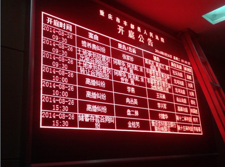 丰都法院3.75室内单红led显示屏