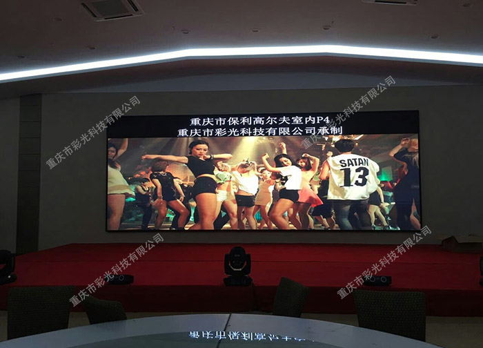 重庆保利高尔夫球会有限公司位于北部新区经开园办公楼,高清的室内P4显示屏凭借色彩的表现能力为前来消费的人